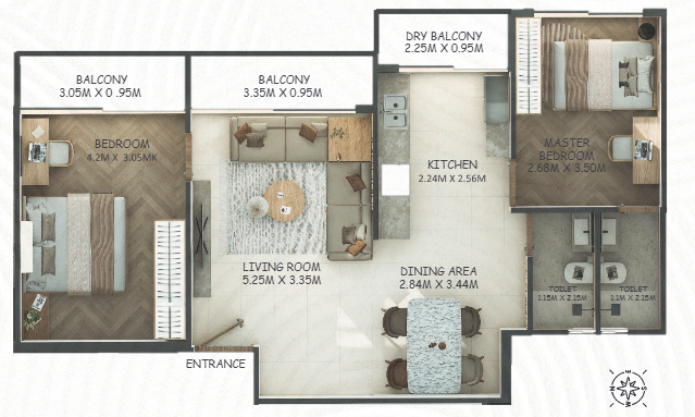 1 BHK, 2 BHK