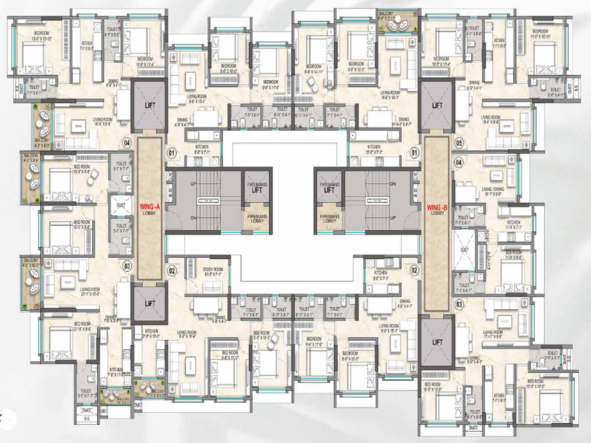 1 BHK, 3 BHK