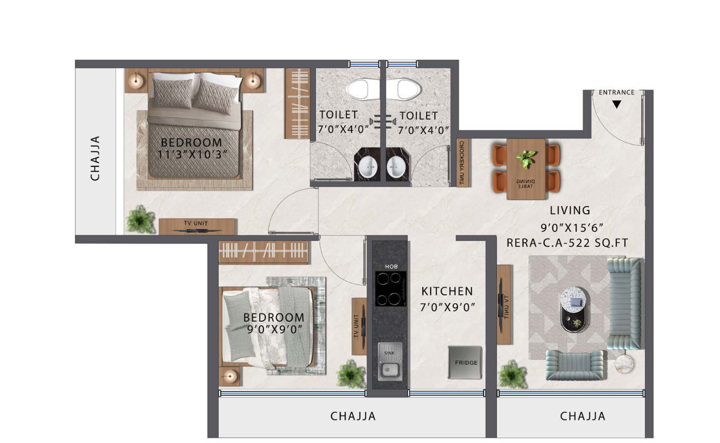 1 BHK, 2 BHK